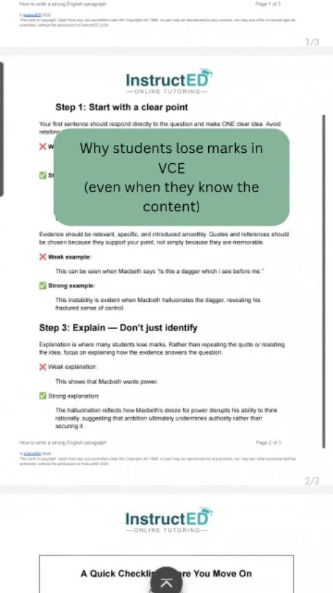 Many VCE English students understand the text but lose marks because their ideas aren’t expressed clearly or structured effectively.
